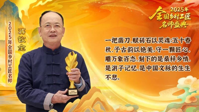從區農業和農村水利局獲悉,在由農業農村部等七部門聯合舉辦的第一批國家級鄉村工匠名師評選活動中,豐澤區閩南傳統民居營造技藝非遺傳承人蔣欽全,榮膺國家級“鄉村工匠名師…
