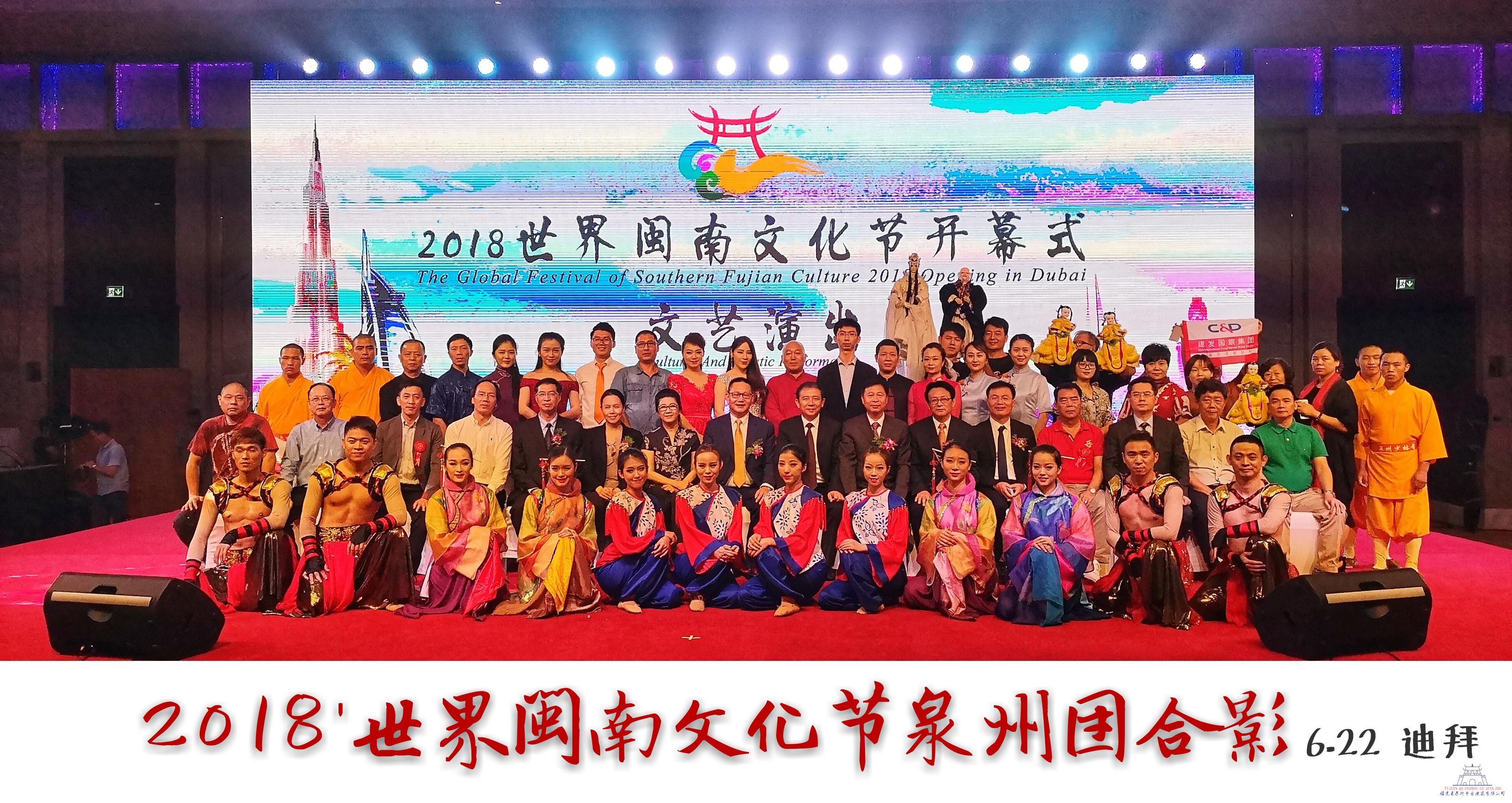 2018年6月22日,世界閩南文化節在阿聯酋迪拜舉行,現場賓客云集,精英薈萃。來自世界各地的20余個閩南社團上千名鄉親共襄盛會。本次文化節由阿聯酋福建總商會承辦,旨在推動閩南文化的傳承、展示、交流和聯誼?;顒觾热葚S富多彩、精彩紛呈,包括開幕式、文藝演出、閩南文化報告會、閩南傳統技藝及文創產品展洽會、“家在閩南”攝影作品展和泉州文化旅游推介會等。