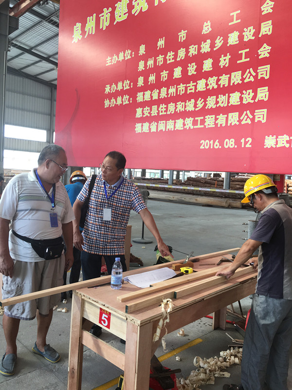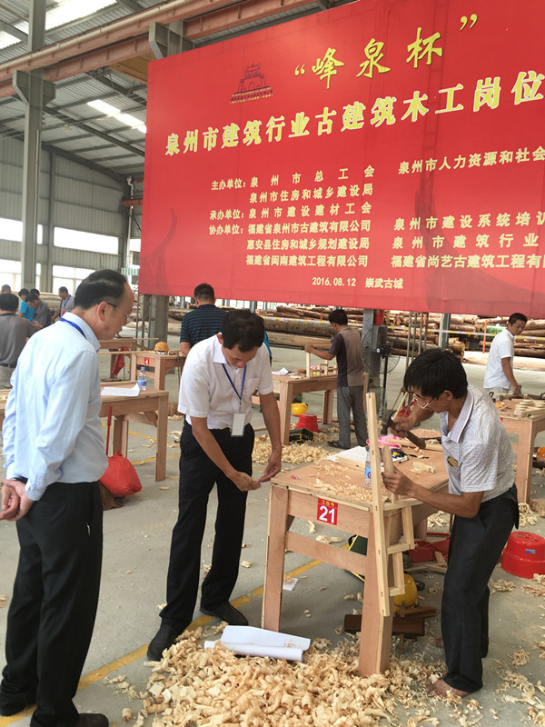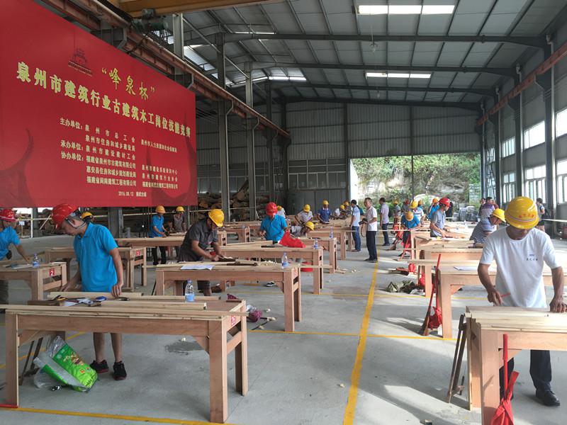 2016年8月12日,泉州市總工會(huì)、泉州市人力資源和社會(huì)保障局、泉州市住房和城鄉(xiāng)建設(shè)局、泉州市建設(shè)建材工會(huì)主辦,我司等單位協(xié)辦的泉州市建筑行業(yè)“峰泉杯”古建筑木工崗位技能競(jìng)賽在惠安崇武圓滿(mǎn)落幕。