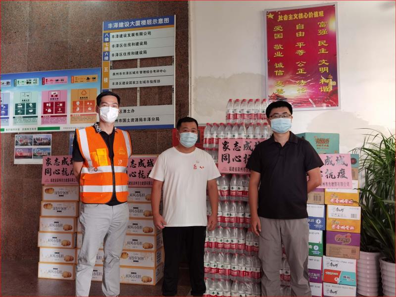 當得知豐澤區需要支援抗疫物資的消息,公司董事長、總經理立刻通知辦公室積極配合準備。9月22日一早,公司常務副總李澤平帶領工作人員,將礦泉水、蛋糕、泡面等抗疫物資送到豐澤區住建局,以便調配到有需要的抗疫工作處。