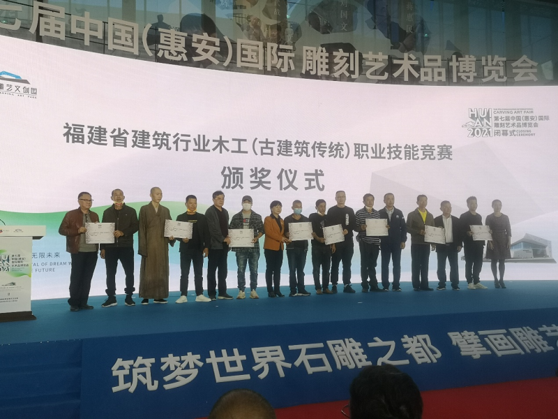 為弘揚精益求精的工匠精神,推進閩南古建筑營造技藝的傳承發展。 2021年福建省建筑行業木工(古建筑傳統)職業技能競賽于2021年11月11日至14日,在惠安雕藝文創園舉辦。泉州古建筑公司選手張楊濤以其扎實的理論基礎及精湛的技藝榮獲競賽一等獎,為公司摘得桂冠。